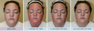Afhankelijk van het behandelde gebied en de intensiteit van de behandeling zal de huid er wat roder uitzien en warm/prikkelend aanvoelen. Dit gevoel zal na enkele uren wegtrekken. De behandeling heeft een korte herstelperiode. Na de behandeling krijg je 2 nazorgproducten mee naar huis om het herstel te bevorderen. Voor een optimaal resultaat zijn 3 tot 6 behandelingen nodig met een interval van 4 weken.